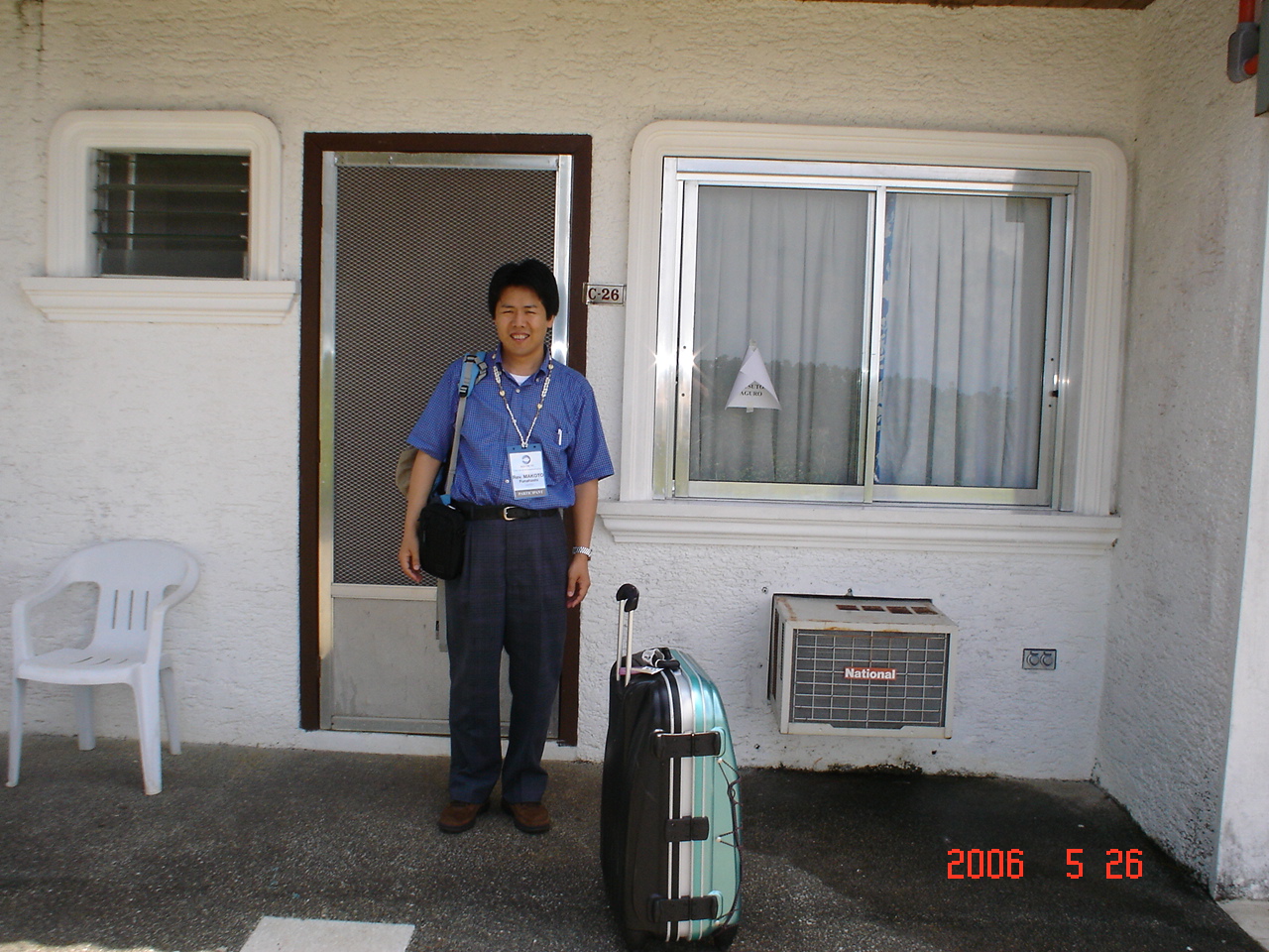 宿舎の前で